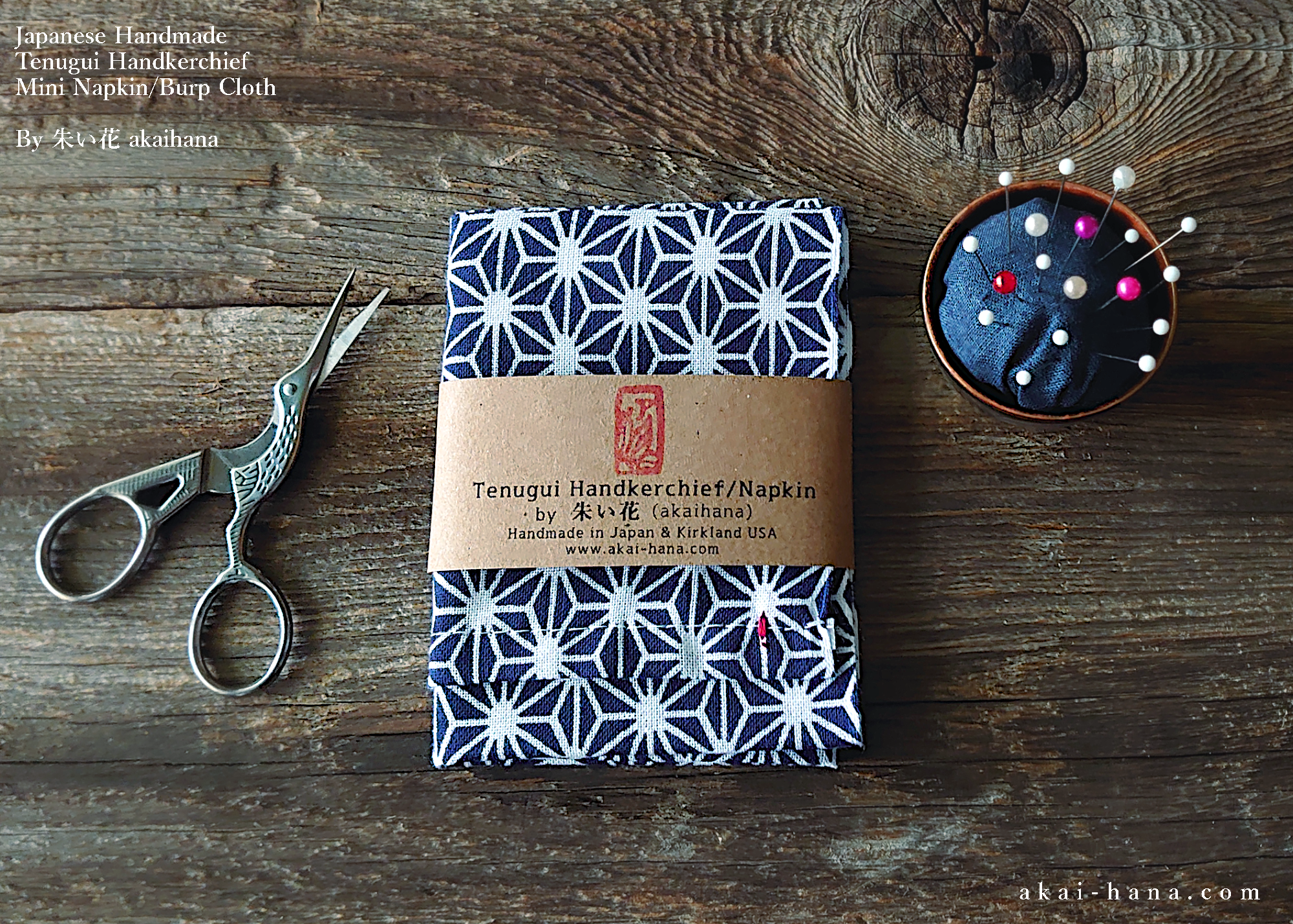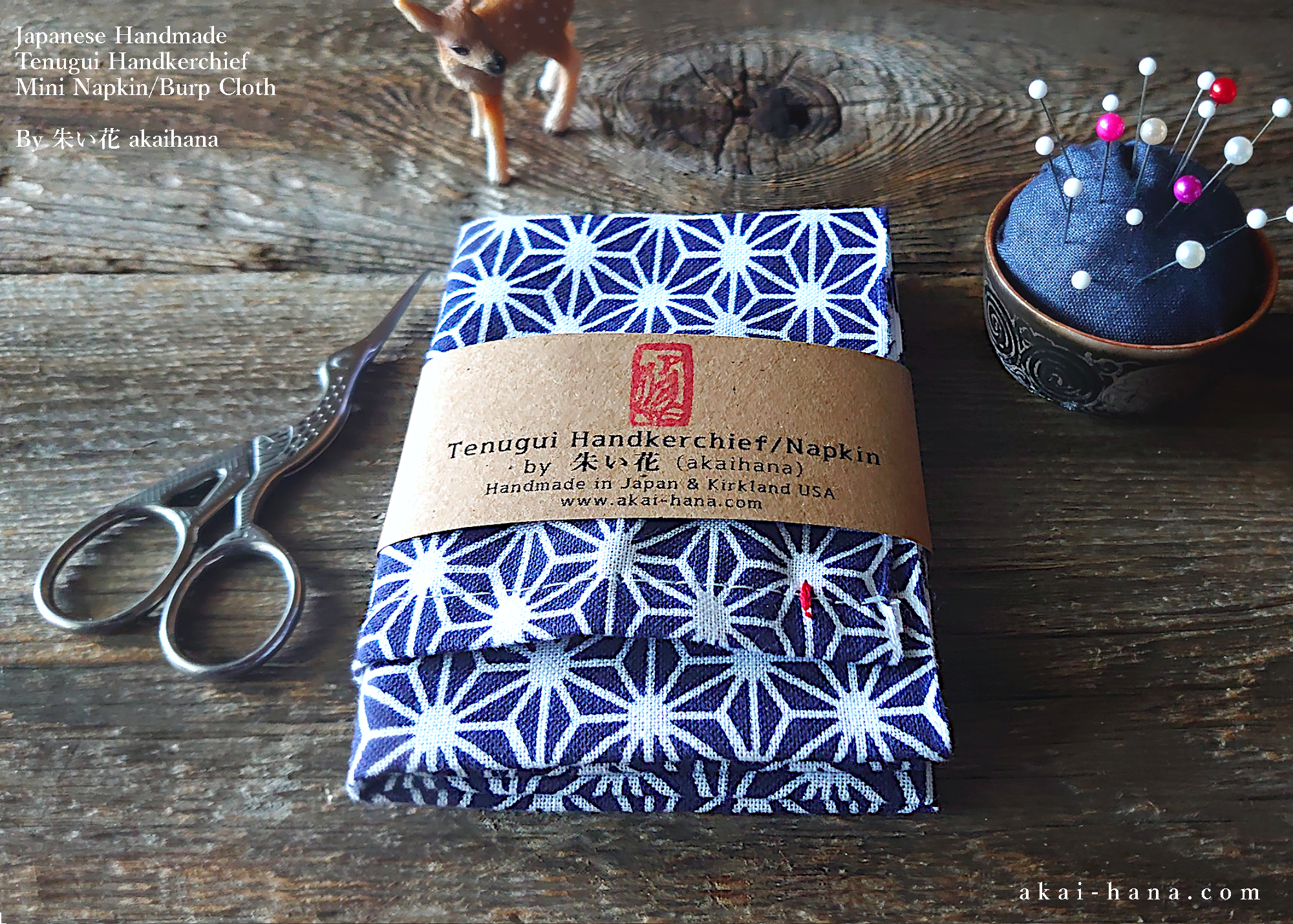 Hand sewn Handkerchief made with Japanese Tenugui. It is printed in special way, so that you can see the patterns in back side of fabric instead of white blank color. Both end of edges are finished. I added some little kick by one little hand stitch. Tenugui I use are all made in Japan, 100% cotton.