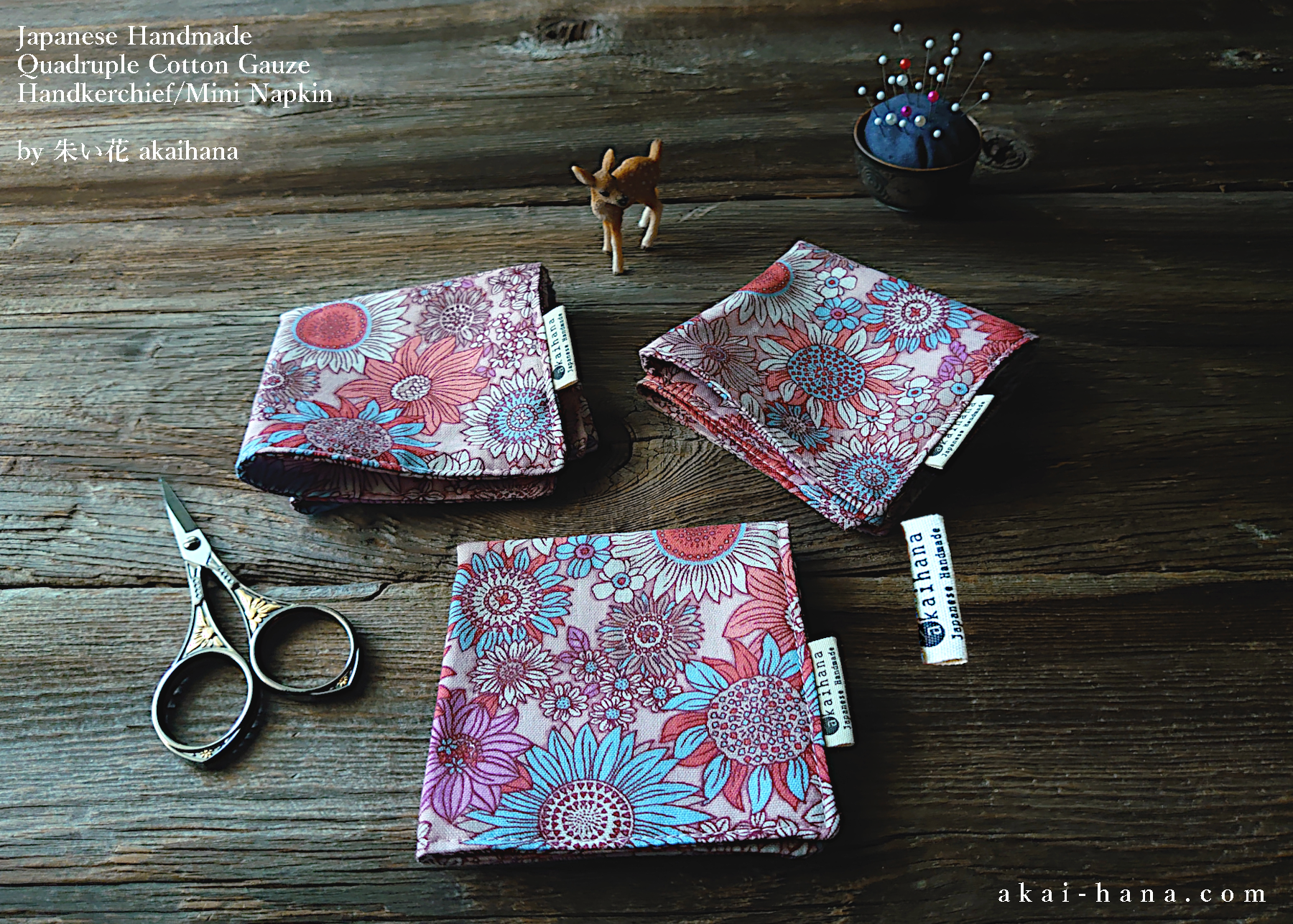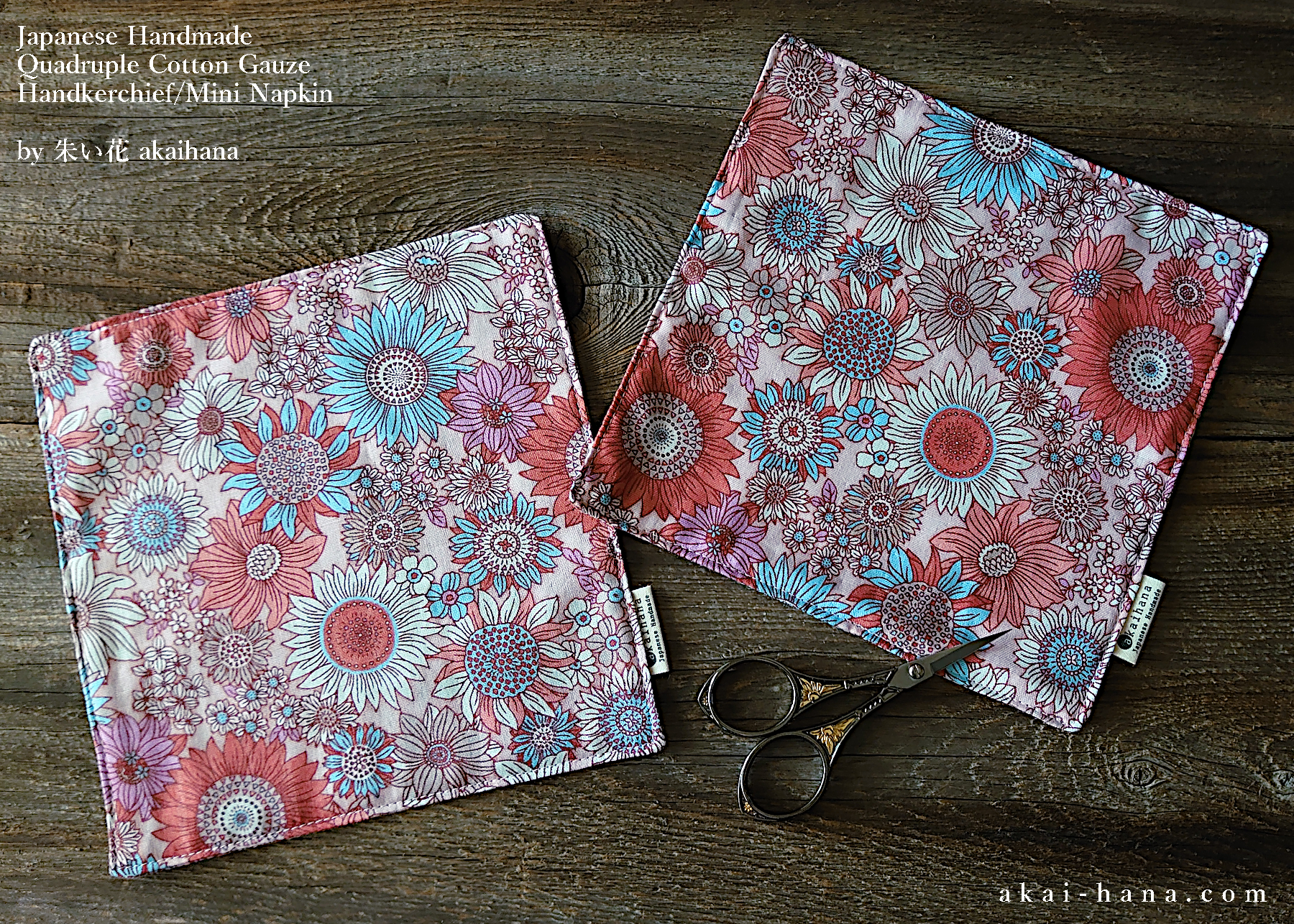 This is a listing for handkerchiefs/mini napkins/burp clothes/tea mats, made with Japanese cotton double gauze. Japanese double gauze is two layers of thin light weight gauze fabric fused into one piece of fabric with special invisible stitches. It is super soft, lightweight and breathable, and it gets even softer with washing. Our gauze handkerchiefs are double sided with same fabric, so total of 4 layers of cotton gauze.
