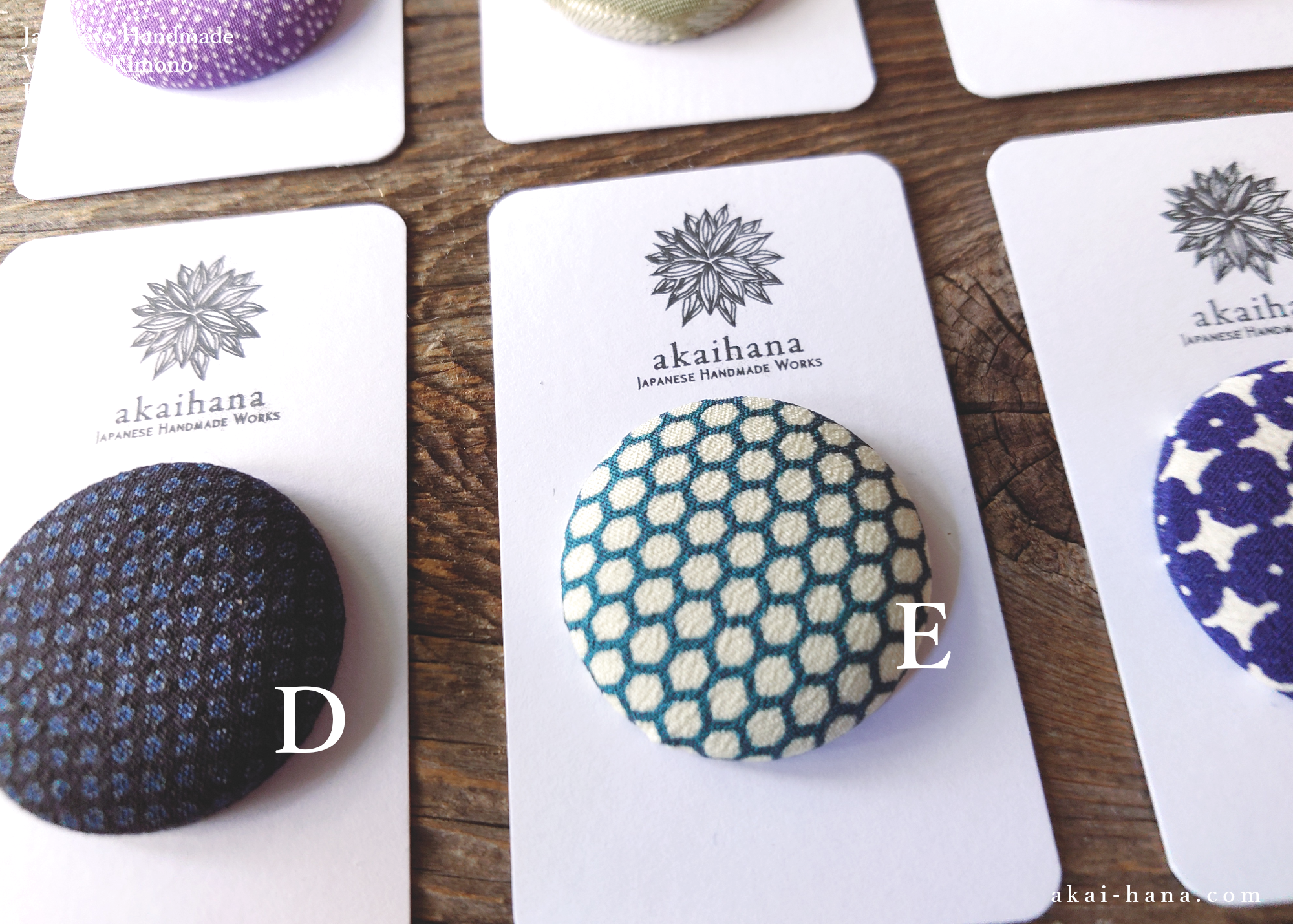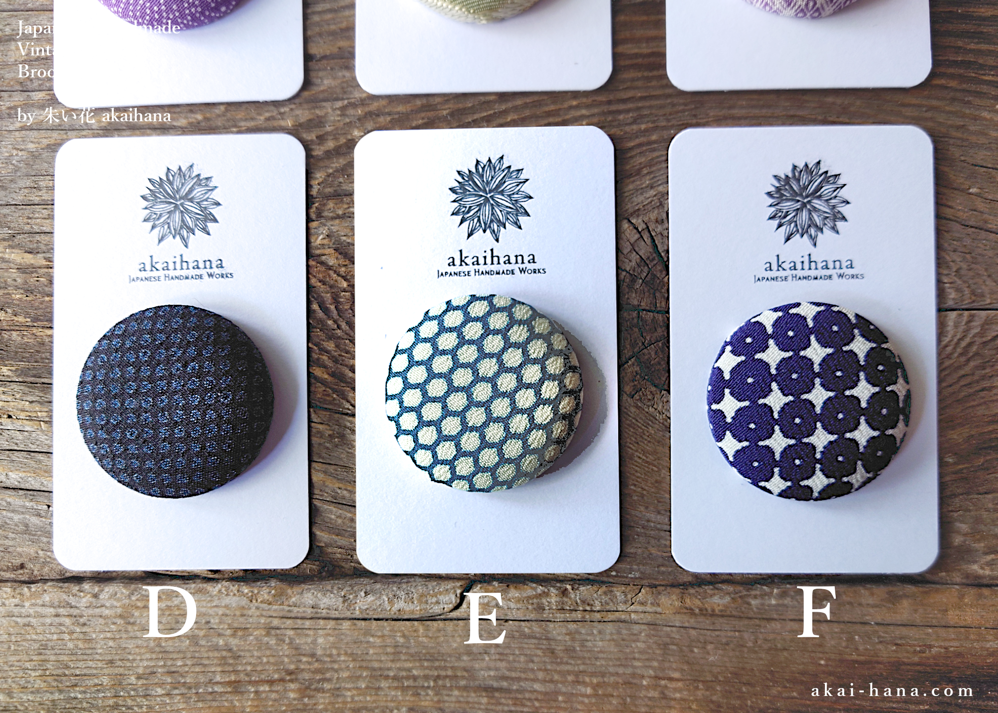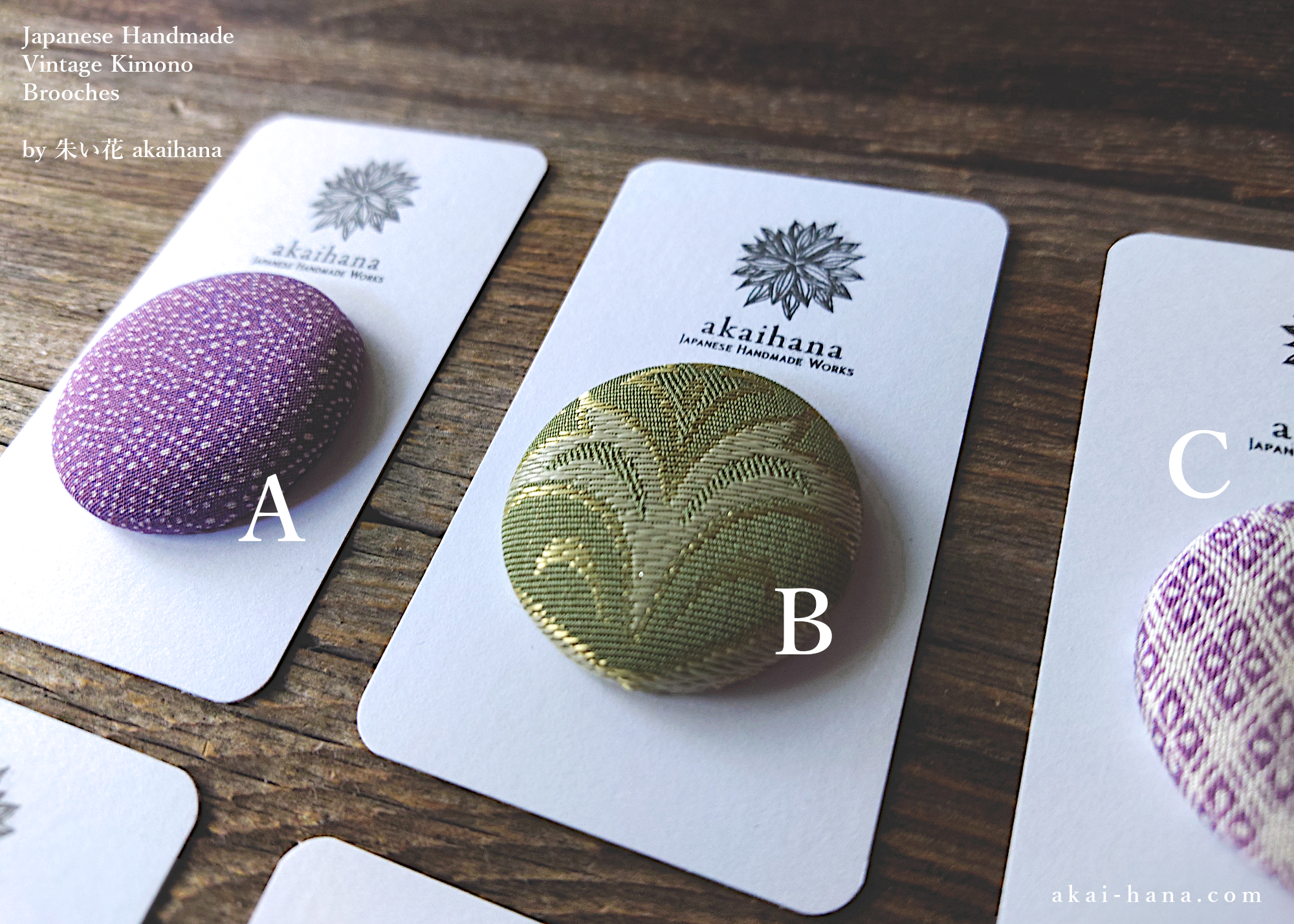 This is the pin brooches with Vintage Kimono covered button, every buttons are handcrafted by myself in the no-pets/no-smoking home studio in Kirkland WA, USA. I treat the back side of buttons with fleece/felt (the color of fleece/felt might be vary).